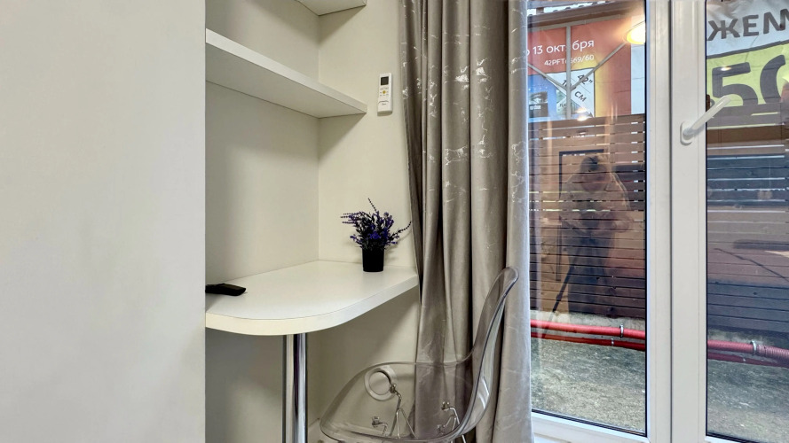 Две студии расположены рядом в одном здании, при брони обоих объектов их можно использовать как двухкомнатную квартиру.