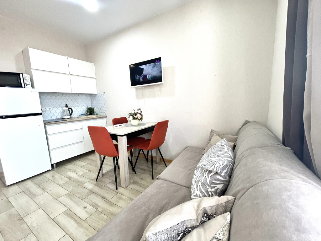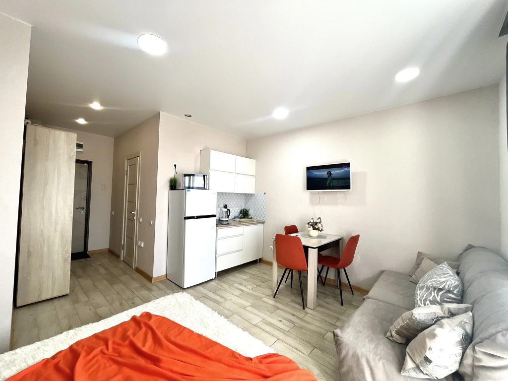 Апартаменты «Студия с балконом и Видом на Море» располагаются в жилом районе Адлер города Сочи. Расстояние до железнодорожного вокзала составляет 950 м, до аэропорта — 3 км. В шаговой доступности находится автобусная остановка. Расстояние до моря составляет 620 м. На ближайшем пляже Volna береговая линия с галечным пляжем, шезлонгами и зонтами, а также на пляже есть зоны отдыха, sup доски и массаж. В окрестностях пляжа множество ресторанов, кафе и столовых. На машине можно добраться до границы с Абхазией, до Красной поляны и Олимпийского парка.