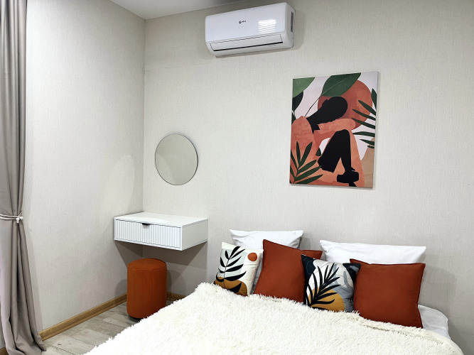 В апартаментах есть балкон, откуда открывается вид на море и горы. В распоряжении гостей фен, гладильная доска, утюг, стиральная машина, микроволновая печь, плита, посуда, сплит-система и сушилка.