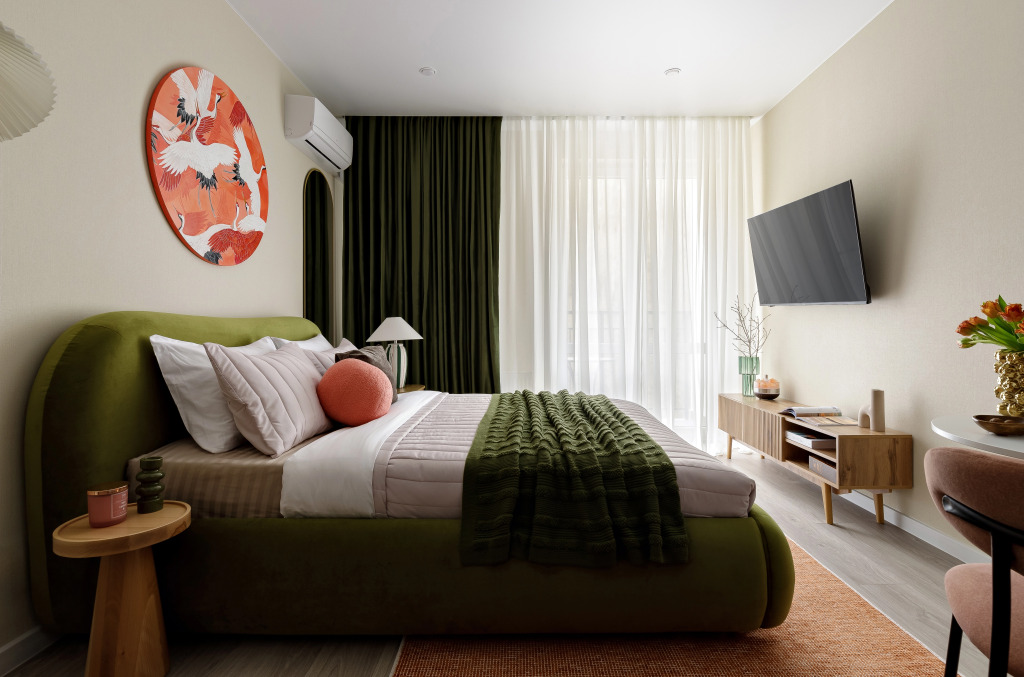 В номере вы найдёте телевизор. Оснащение зависит от выбранной категории номера.
