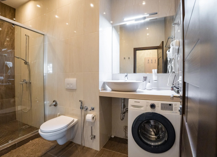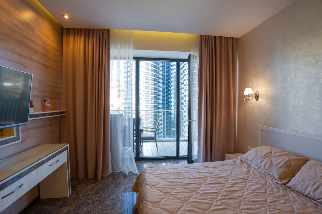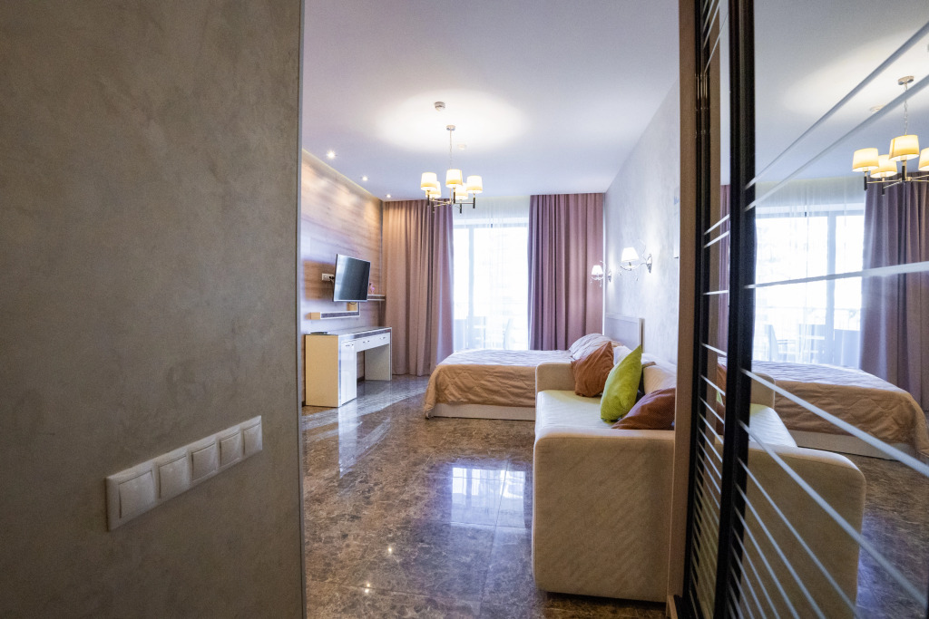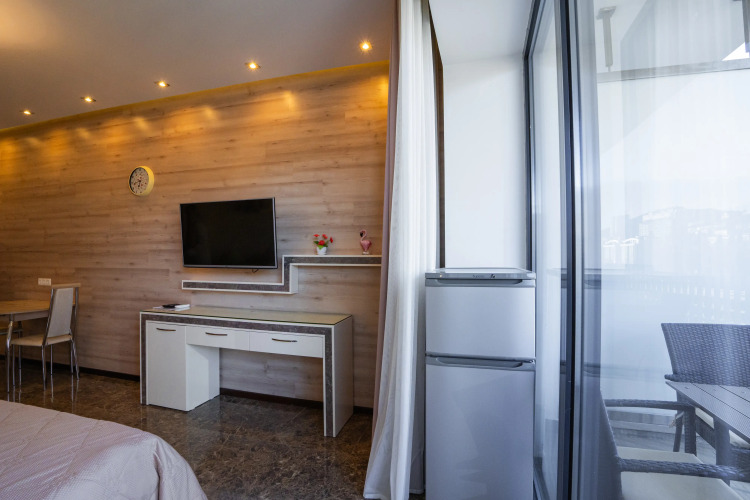 В номере вы найдёте телевизор. Оснащение зависит от выбранной категории номера.