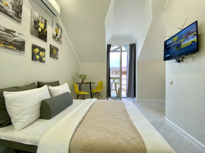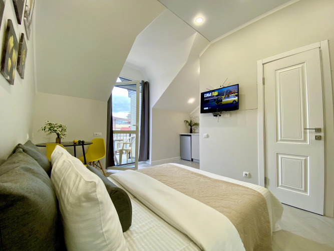 В номере вас будут ждать DVD-плеер и телевизор. Перечисленные услуги есть не во всех номерах.