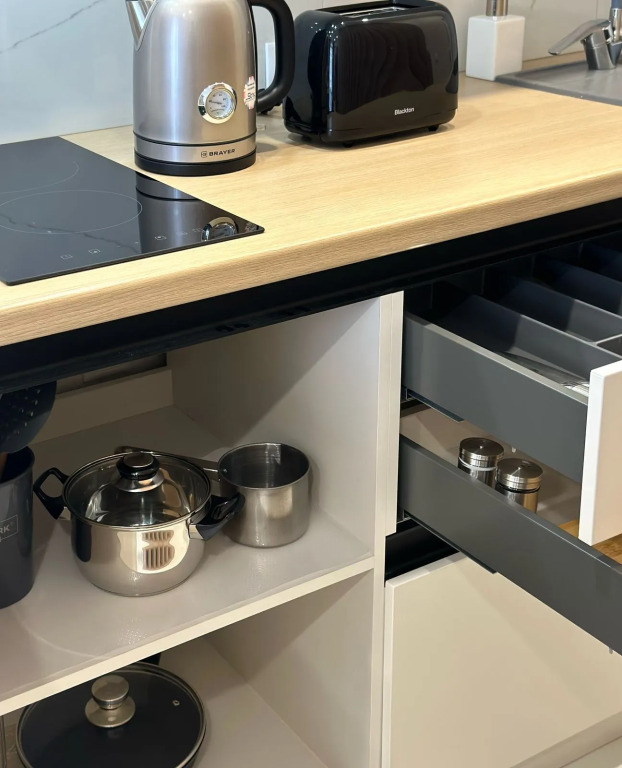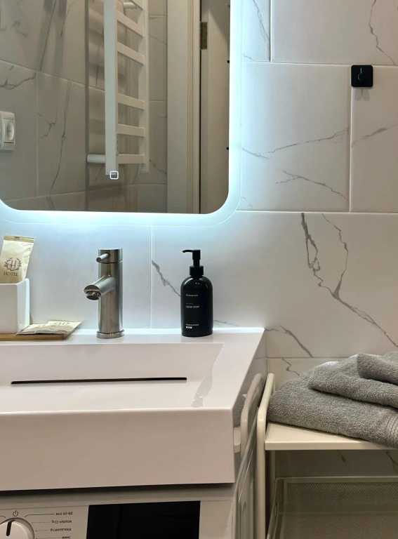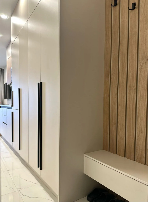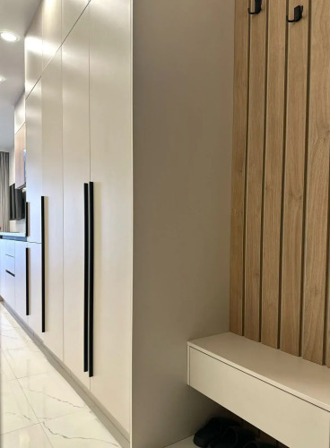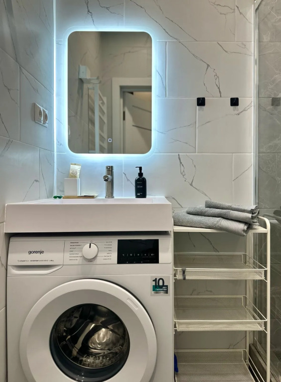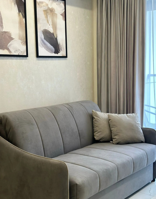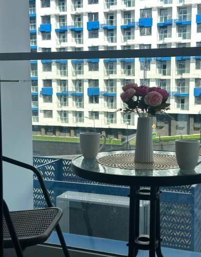 Квартира оборудована необходимыми удобствами, гостям доступны: посуда, электроплита, микроволновая печь, тостер, чайник, холодильник, утюг, гладильная доска, фен, пылесос, стиральная машина, кондиционер, Smart TV и скоростной интернет, двуспальная кровать 140x200 см, диван 140x200 см, ванная комната и балкон с мебелью для отдыха.