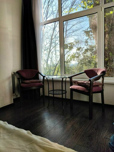 С аэропорта можете добраться на электричке до ж.д. Вокзал Главный Сочи или заказать трансфер, либо такси по адресу г. Сочи, ул. Санаторная 40/4