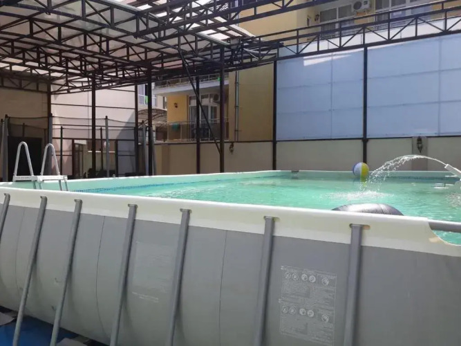 Общая кухня оборудована для самостоятельного приготовления пищи. Здесь будем баловать себя водными процедурами: есть открытый бассейн. Дополнительно: банкомат.