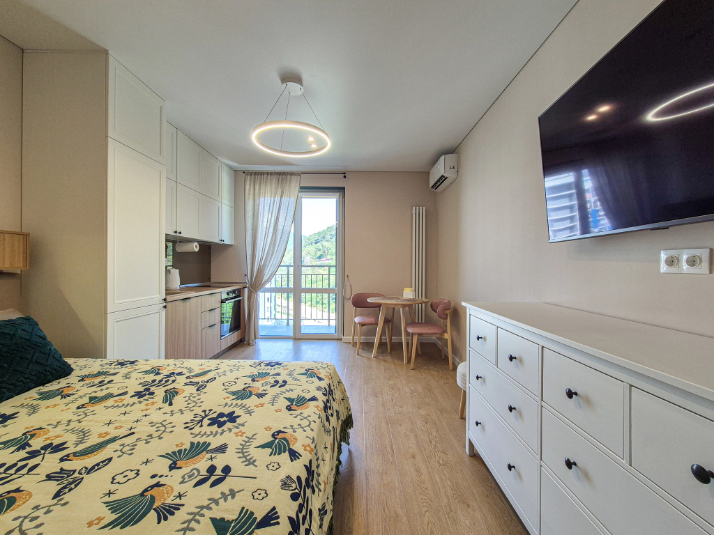 Выбор туристов, путешествующих с семьёй: апартаменты «Квартира Уютная студия с видом на набережную» находятся в Сочи. Эти апартаменты располагаются в 18 км от центра города. Рядом с апартаментами можно прогуляться. Неподалёку: Смотровая башня горы Ахун, Олимпийский парк и Сочинский дендрарий.
