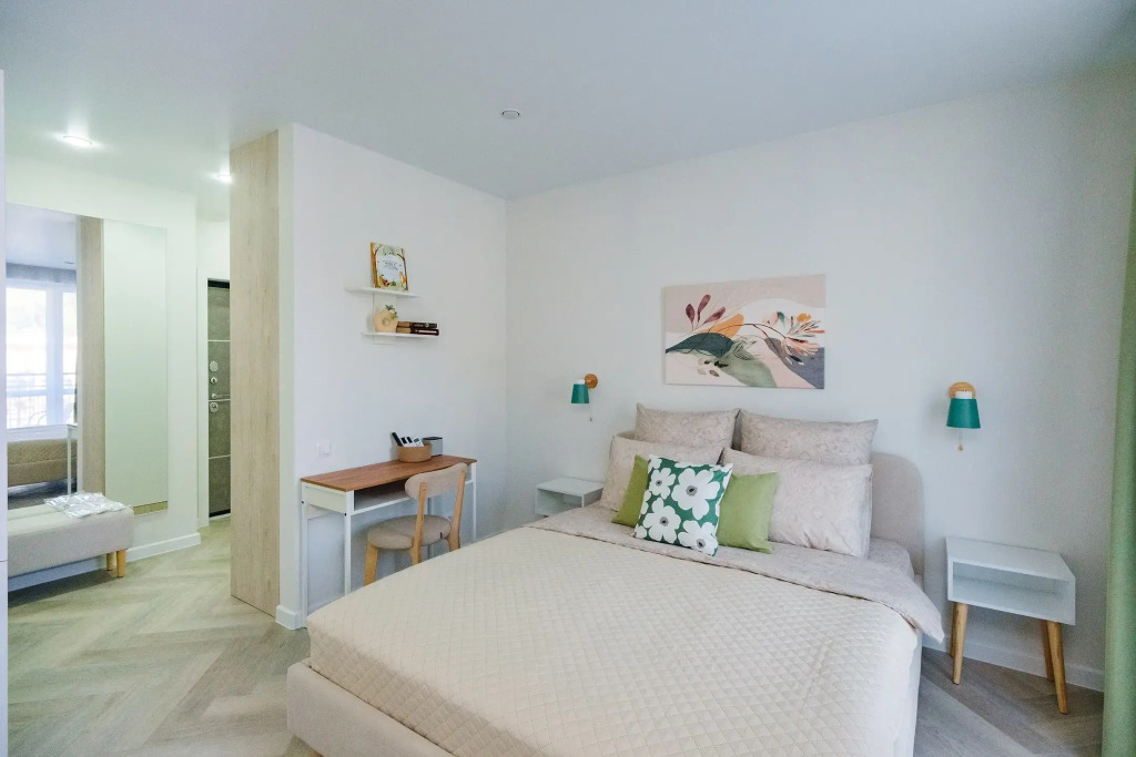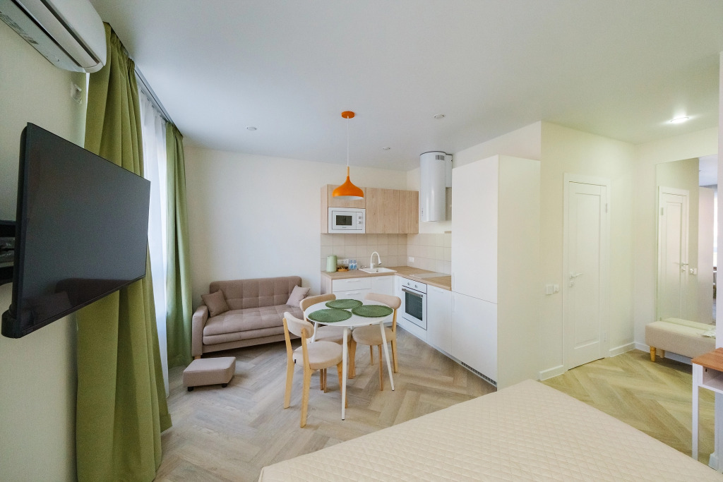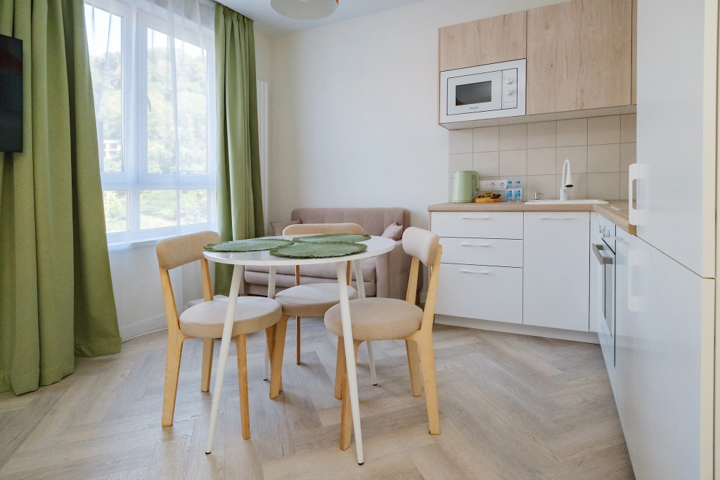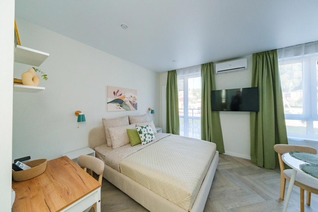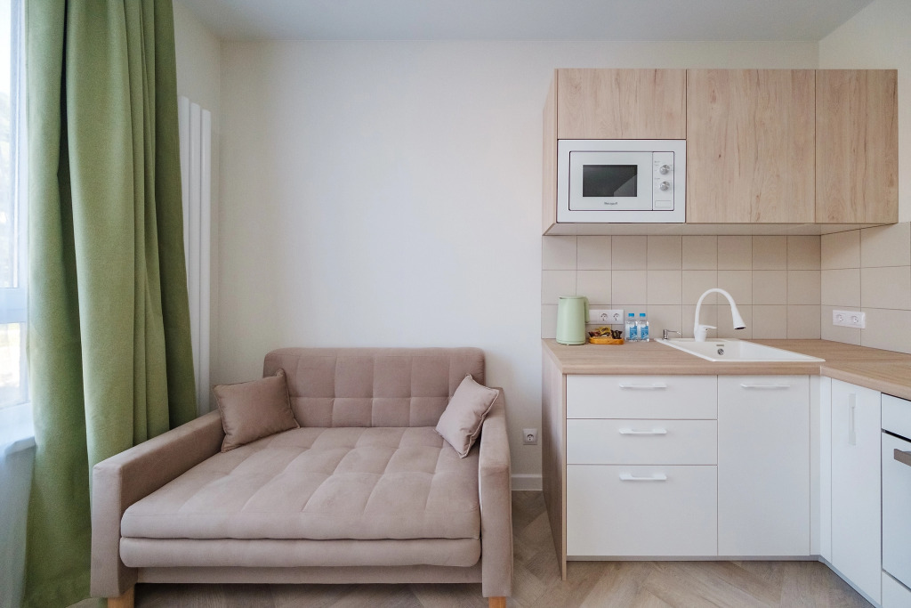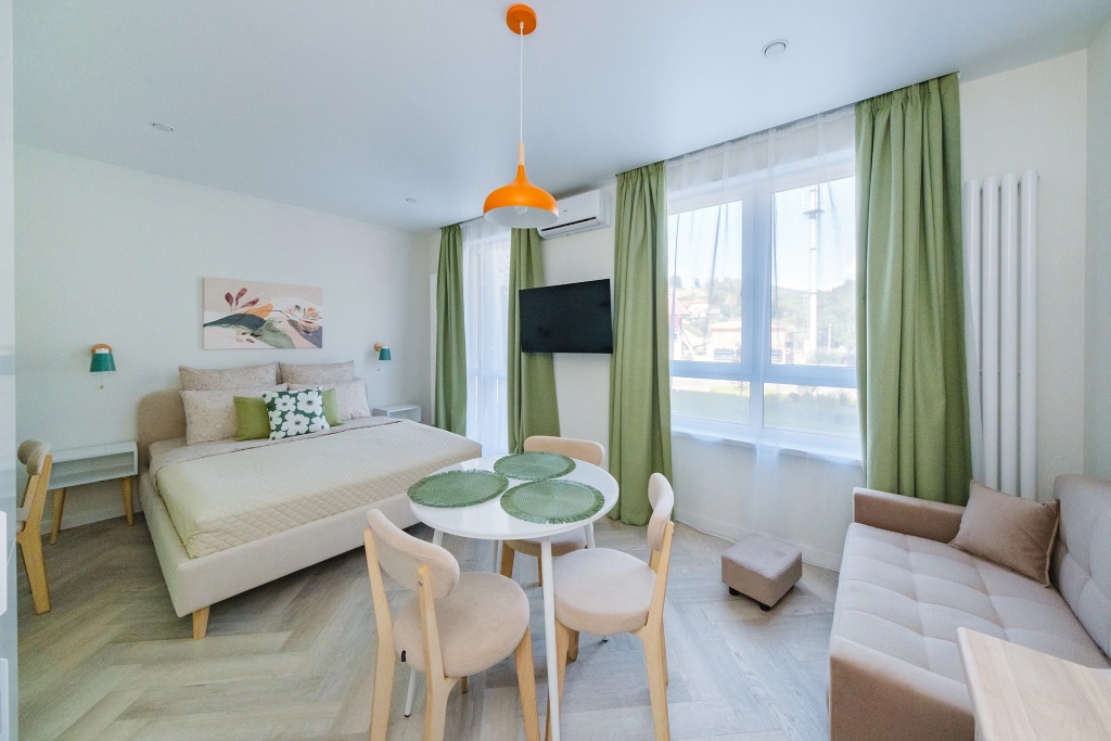 Гостиница Квартира Уютная и новая студия в Кудепсте, адрес на карте Сочи, улица Искры, д.88 корп.10, с описанием номеров и правом онлайн бронирования на площадке ВашОтель.RU , цены проживания и удобства.