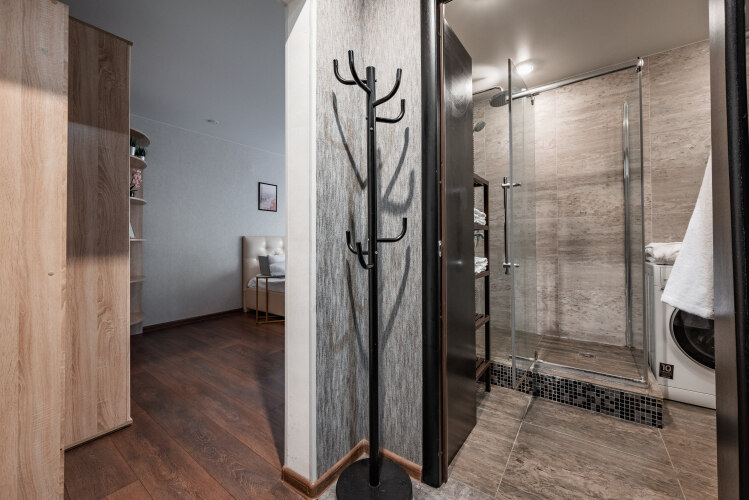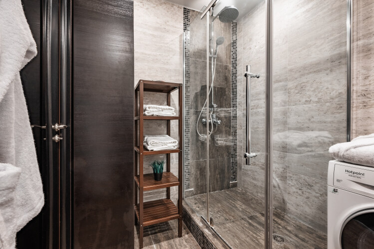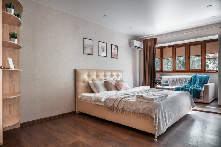 Кухня отдельная, со всей необходимой посудой, микроволновая печь, посудомоечная машина, газовая панель, холодильник. В спальне сплит-система, TV с доступом в интернет, высокоскоростной Wi-Fi. В ванной комнате душевая кабина с тропическим душем, стиральная машина, фен. Также имеются шкаф, сушилка для белья, гладильные принадлежности. Спальные места: двуспальная кровать с анатомическим матрасом, раскладной диван. Для комфортного сна в квартире плотные затемняющие шторы. Возможно размещение с домашним питомцем за дополнительную плату.
