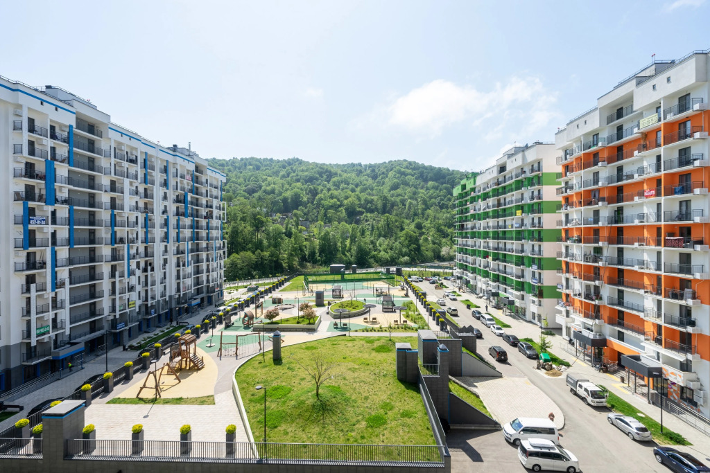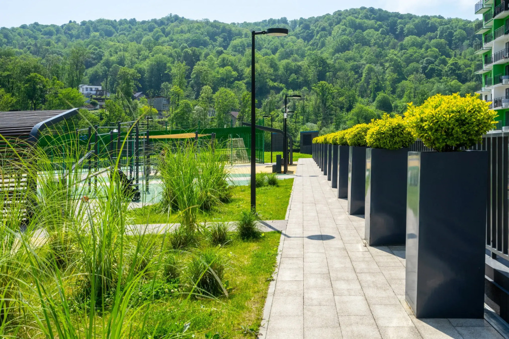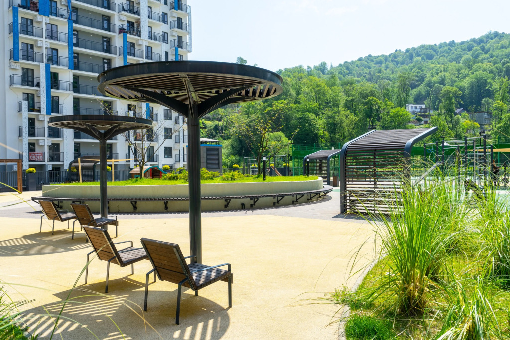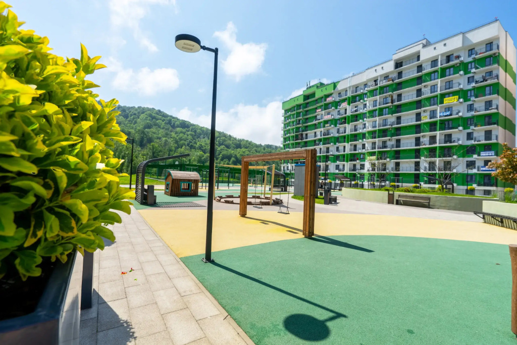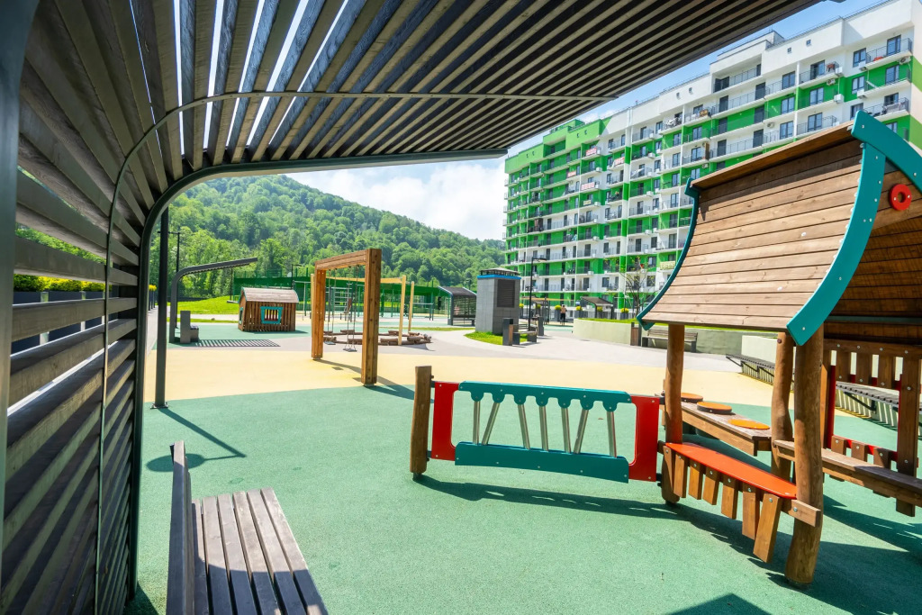 На территории комплекса организованы закрытый безопасный двор, детские площадки для разных возрастов, закрытая парковка, магазины и кафе.