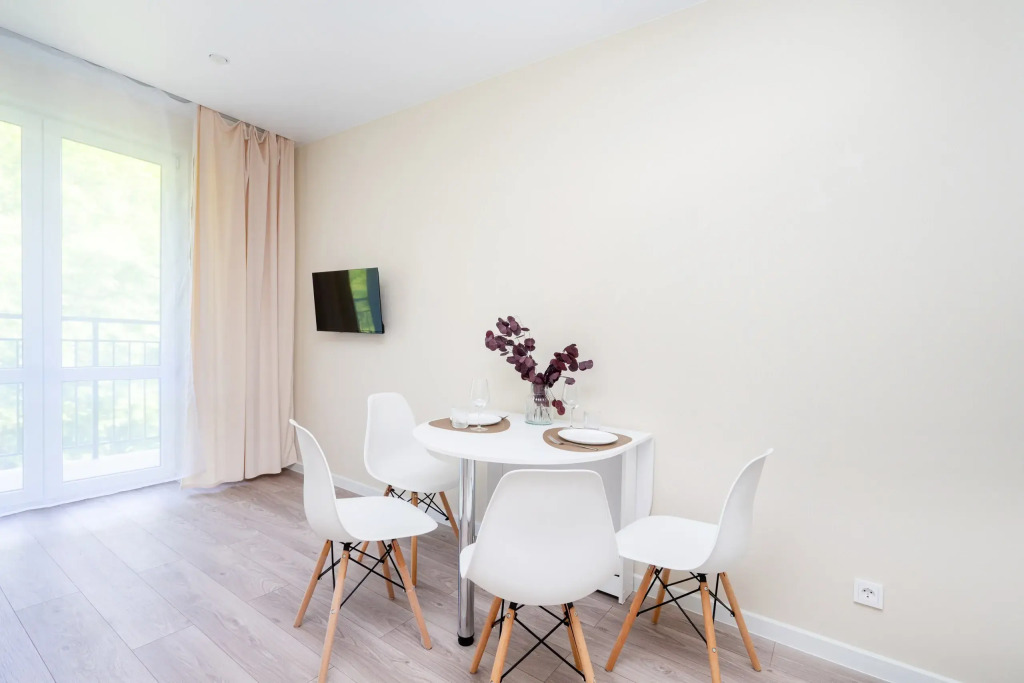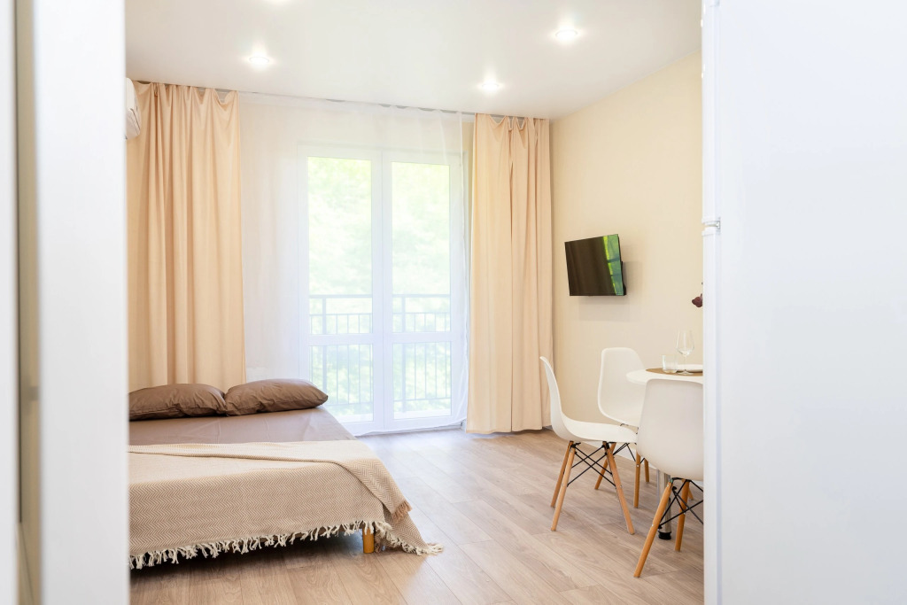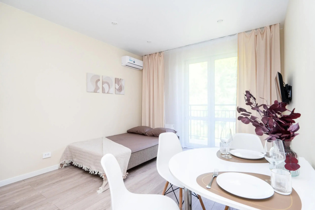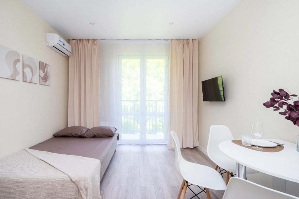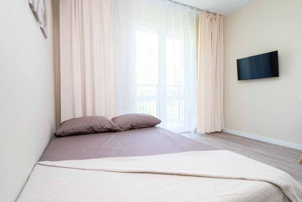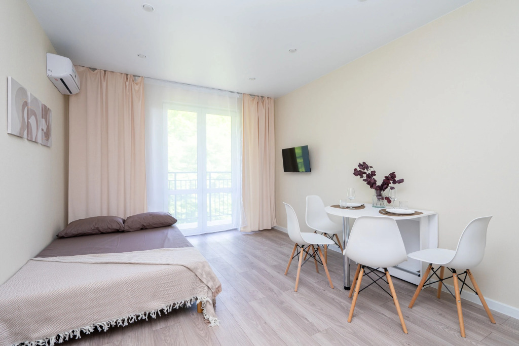 Квартира рассчитана на проживание до 3 человек. Есть двуспальный диван, кухня, отдельная ванная комната, необходимая мебель и техника.