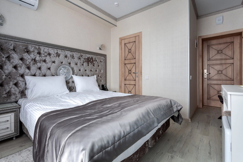 В номере вы найдёте телевизор, мини-бар и халат. Оснащение зависит от выбранной категории номера.