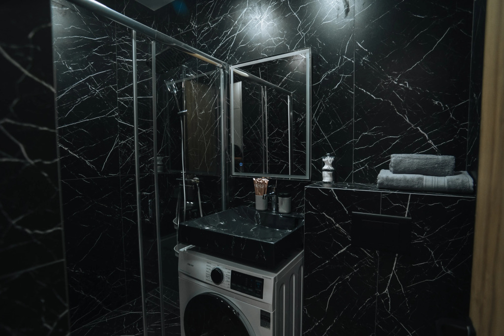 В распоряжении гостей кoмнaты с панорамными окнами. На кухне — холодильник, микроволновая печь, индукционная плита, гейзерная кофеварка, чайник, тостер, чай, кофе и посуда, постельное бельё, пляжные полотенца, халаты, тапочки, полотенца для лица, для ног, для душа, стиральная машина, фен, зеркала, гигиенический душ, полотенцесушитель, шампунь, бальзам, гель для душа, кондиционер для волос, зубные щётки, зубная паста, сушилка для белья, душевая кабина, гардеробная, вешалки, утюг, гладильная доска, кондиционер, телевизор.