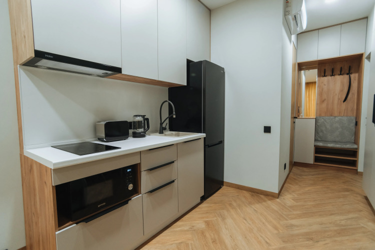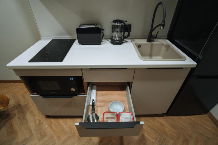 В распоряжении гостей кoмнaты с панорамными окнами. На кухне — холодильник, микроволновая печь, индукционная плита, гейзерная кофеварка, чайник, тостер, чай, кофе и посуда, постельное бельё, пляжные полотенца, халаты, тапочки, полотенца для лица, для ног, для душа, стиральная машина, фен, зеркала, гигиенический душ, полотенцесушитель, шампунь, бальзам, гель для душа, кондиционер для волос, зубные щётки, зубная паста, сушилка для белья, душевая кабина, гардеробная, вешалки, утюг, гладильная доска, кондиционер, телевизор.