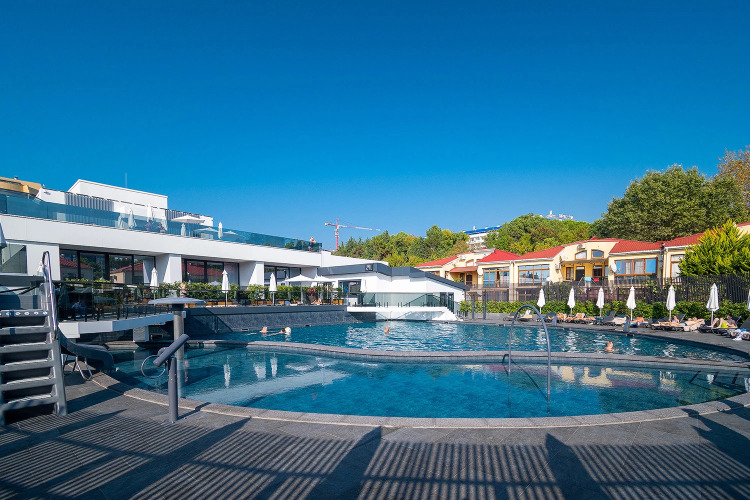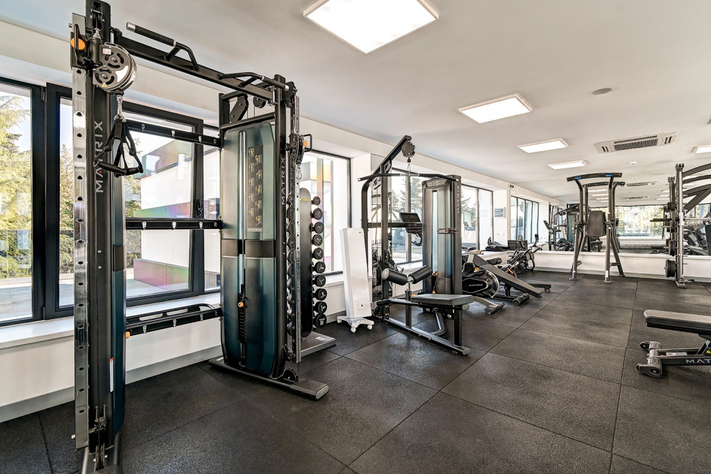 На территории гости могут воспользоваться бассейном, тренажёрным залом и детской площадкой.