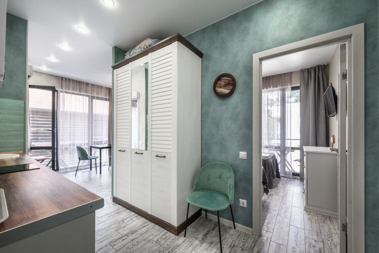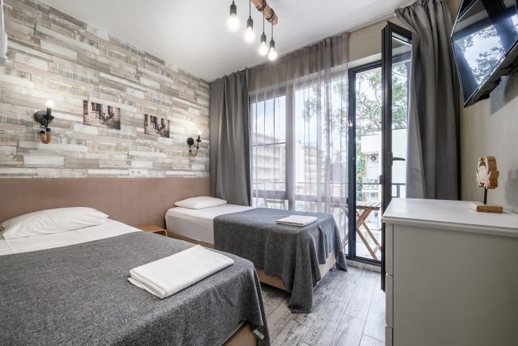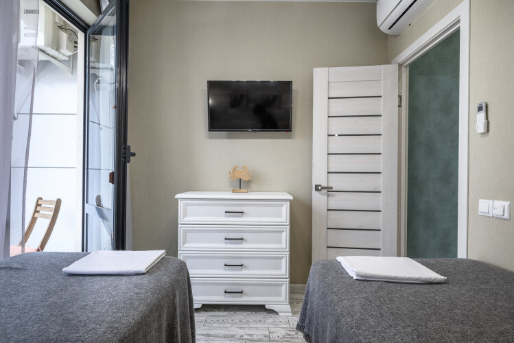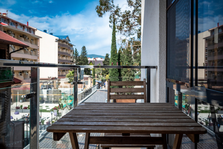 В номере гостей будут ждать телевизор, халаты. Номера оборудованы тёплыми полами, а также двумя балконами, на каждом из которых есть уличная мебель.