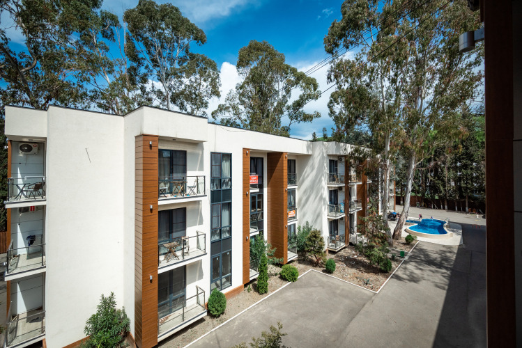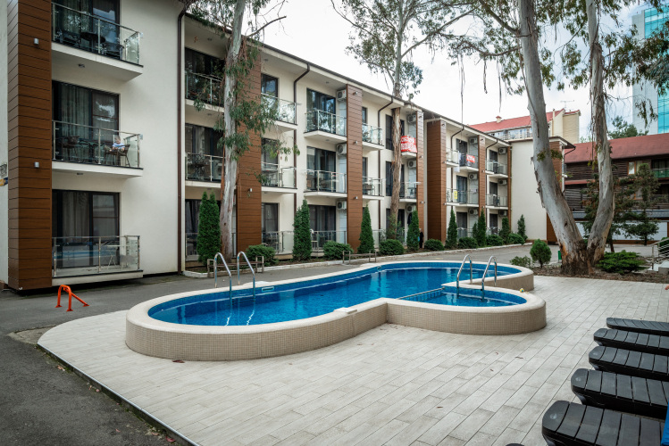 На территории комплекса имеется бассейн. Бассейн не подогреваемый, работает только в летнее время. Гости апартаментов могут пользоваться им бесплатно.