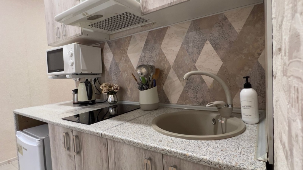 Здесь будем баловать себя водными процедурами: есть крытый бассейн. А ещё в распоряжении гостей гладильные услуги. Сотрудники апартаментов поддержат беседу на русском.