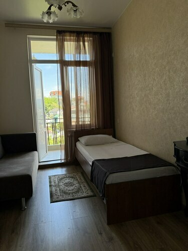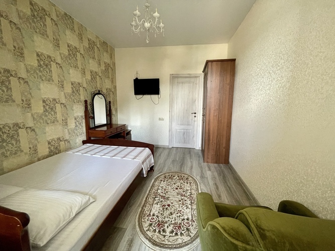 Отличный номер на одного человека. Санузел и душ в номере. Мебель: односпальная кровать, шкаф, стулья, кресла, прикроватные тумбочки, стол, вешалка, туалетный столик. Удобства: вентилятор, телевизор, цифровое ТВ, интернет, балкон.