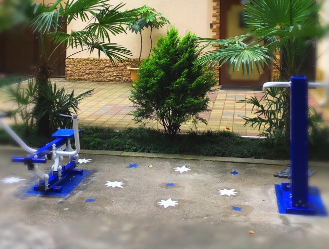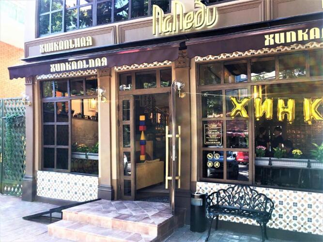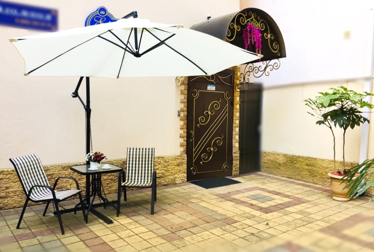 На территории гостевого дома имеется место для отдыха, где можно посидеть и выпить кофе. На нижних этажах располагается кафе грузинской кухни.