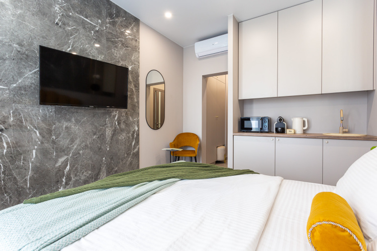 Доступная среда: работает лифт. А ещё в распоряжении гостей прачечная, гладильные услуги и прокат автомобилей. Сотрудники апартаментов поддержат беседу на английском, испанском, итальянском, немецком, польском и русском.