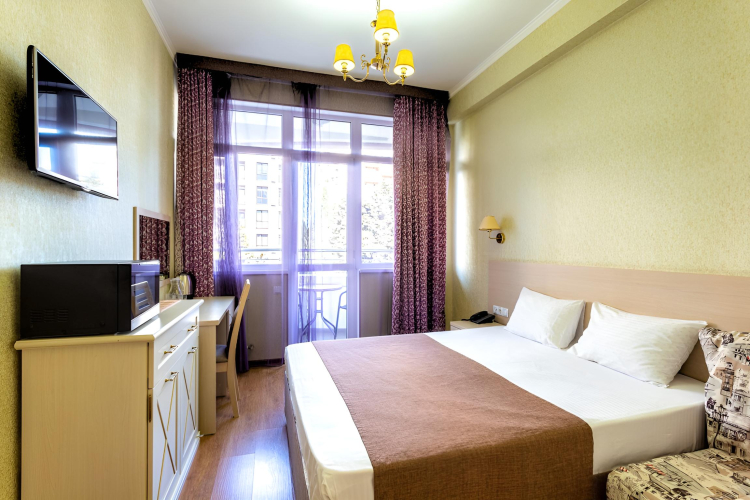 К услугам гостей апapтаменты с балконом, спальней, вaнной комнатой, прихожей.