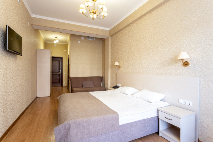 Номер уютно обставлен и оснащён необходимым, чтобы отдохнуть после долгого и насыщенного дня. Имеются телевизор. Перечисленные услуги есть не во всех номерах.
