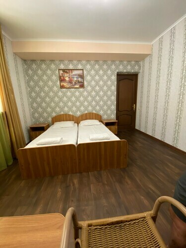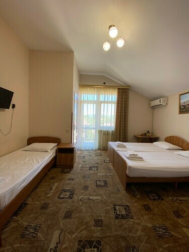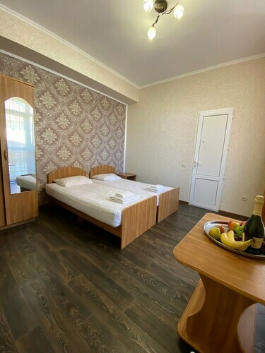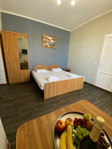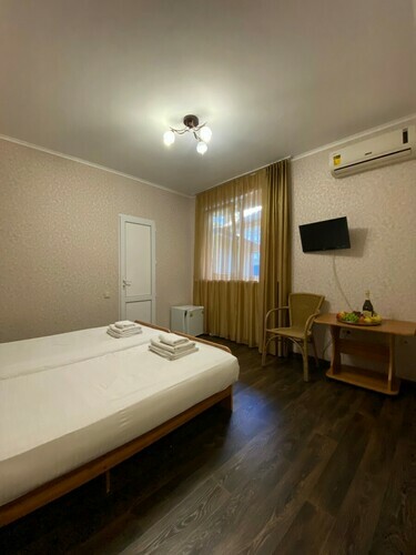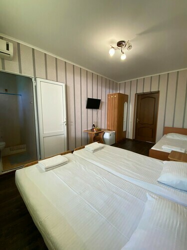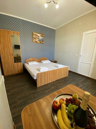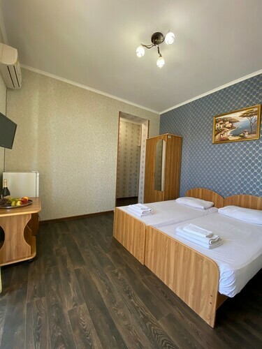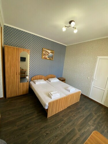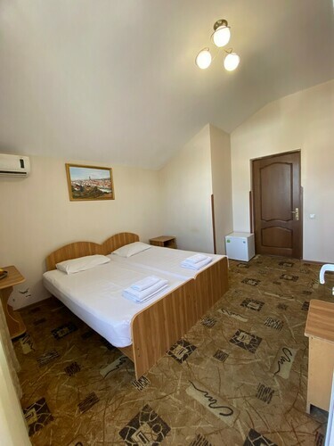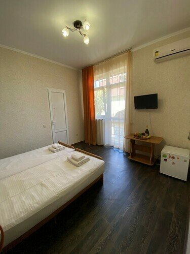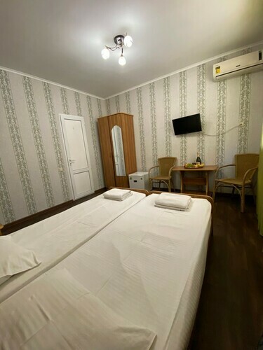 Номера гостевого дома — двухместные и трехместные, в них имеется необходимое для комфортного проживания: кровать, шкаф, стол, тумба, Интернет, плазменный TV, холодильник, кондиционер, ванная комната.