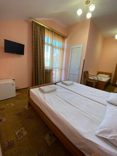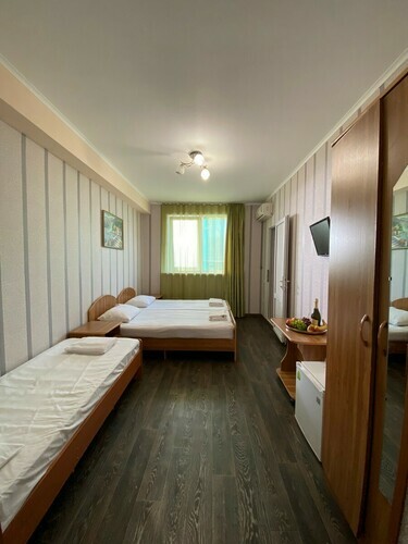 Уютный номер площадью 16 кв.м. Идеально подходит для трехместного размещения. Имеет уютную спальню. В номере: 3 односпальные кровати; шкаф; кондиционер; холодильник; ванная комната с душем и туалетом. Телевизор с плоским экраном, кабельное TV. Ванная комната: Душевая кабина, раковина, туалет, туалетные принадлежности. В стоимость входит: Постельное бельё, полотенца; WI-Fi бесплатно на всей территории. Поддержка программы чтения с экрана включена.